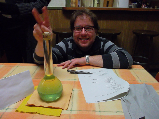 Erstaunlich gut haben alle das Gewicht des Öls in der Flasche geschätzt. Super!