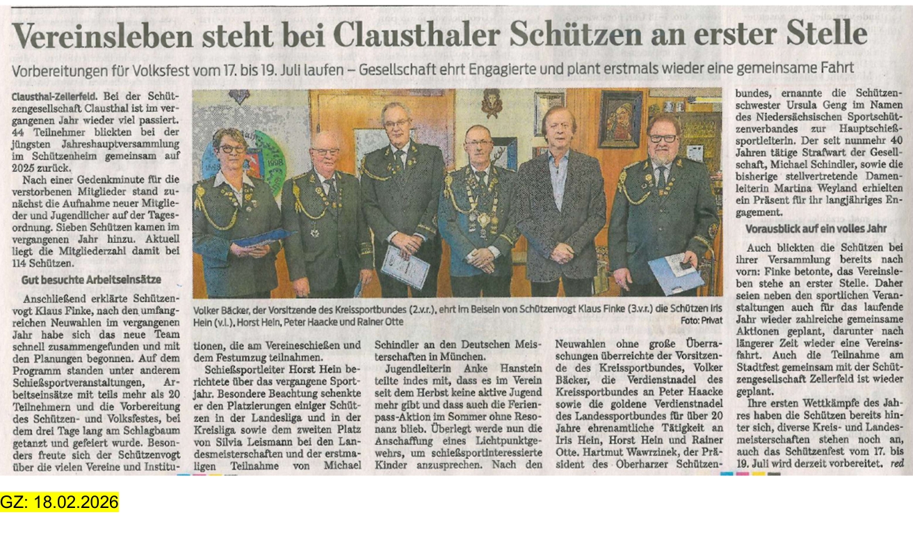 Der Präsident des Oberharzer Schützenbundes Hartmut Wawrzinek ernannte Ursula Geng im Namen des Niedersächsischen Sportschützenverbandes zur Hauptschießsportleiterin. Seit 36 Jahren ist Ulla bereits im Amt und somit ist diese Ernennung mehr als verdient.