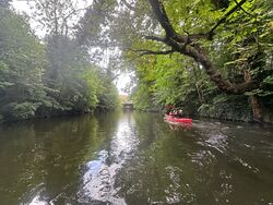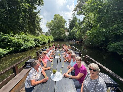 Nach einem kleinen Umtrunk hieß es „Leinen los!“ – per Floss erkundeten wir Braunschweig aus einer ganz besonderen Perspektive vom Wasser aus. Ein tolles Erlebnis!